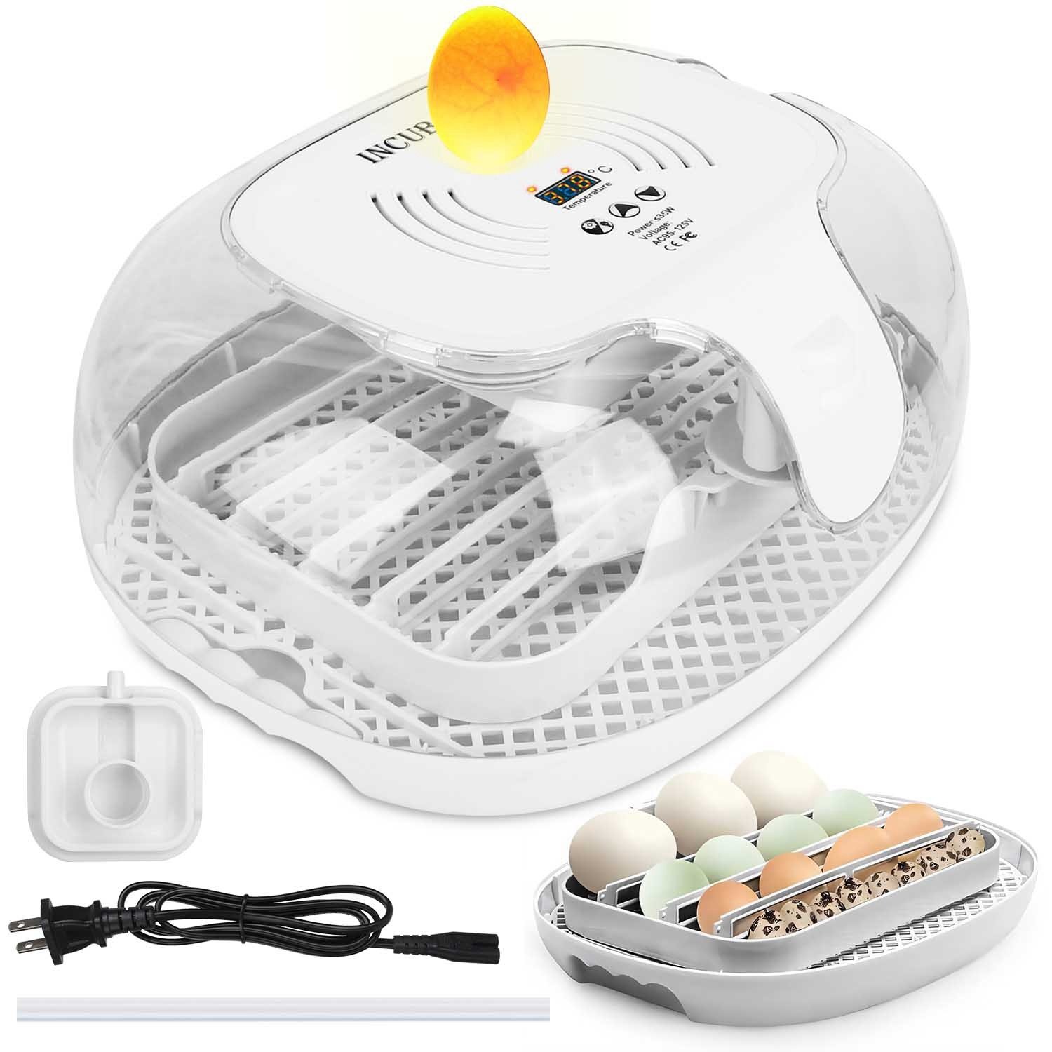 *Professional Egg Incubator*:This low noise egg incubator hatcher can hold 16 chicken eggs,or duck,goose,pigeon,quail eggs,and other egg-like poultry. Good heating uniformity,fast heating,excellent insulation performance,effectively promote the hatching rate. A reliable choice for you.