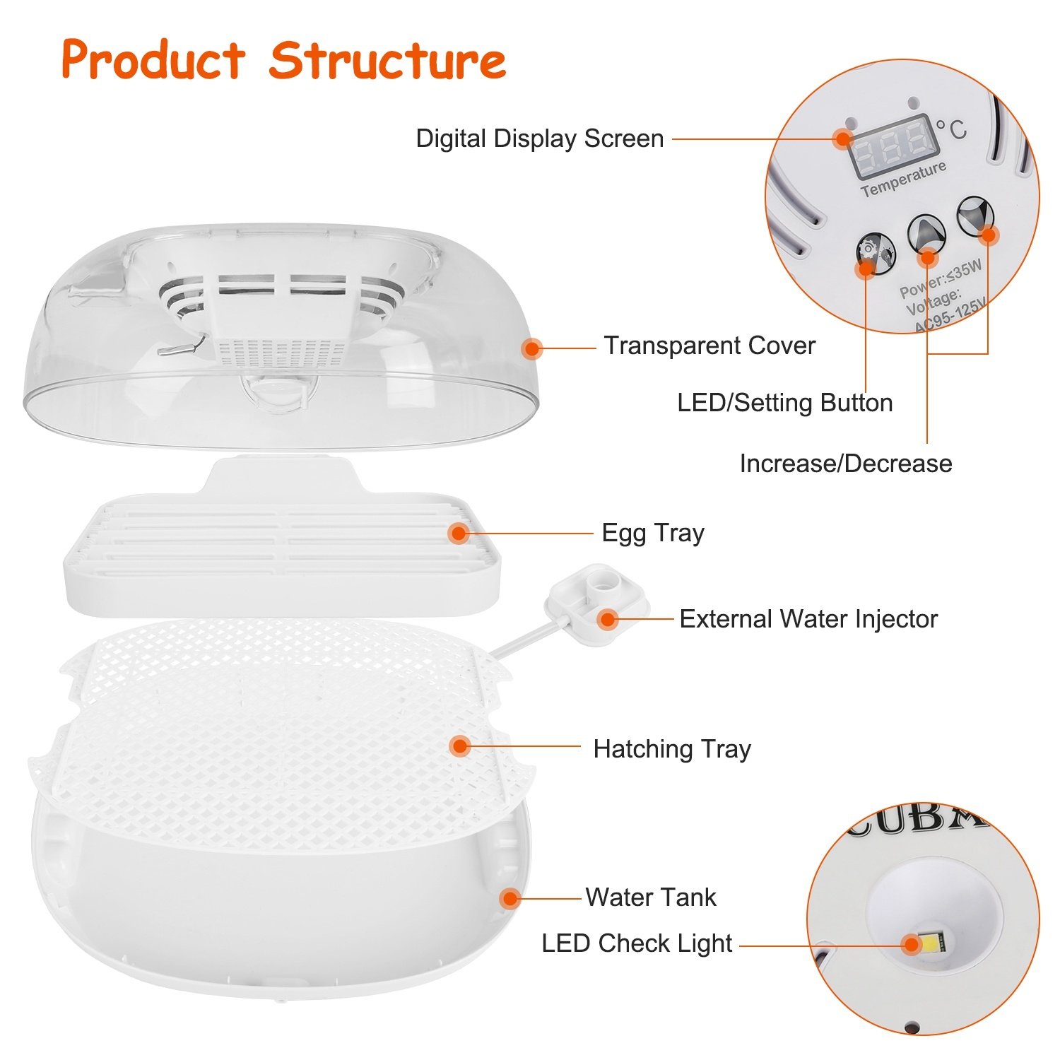 *Easy Operation*:Simple button control offers you convenient usage experience. Made of sturdy and durable acrylic material,easy to clean. Transparent cover allows you to observe the entire process of hatching without interrupting. Witness the birth of life.